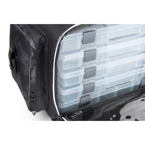 Fox Rage Voyager Camo Stacker Large este o geanta premium pentru pescuit la spinning, conceputa pentru pescarii care doresc un sistem eficient de organizare si transport al nalucilor si accesoriilor esentiale. Fabricata din 100% poliester rezistent, geanta ofera protectie optima impotriva umezelii, murdariei si uzurii.