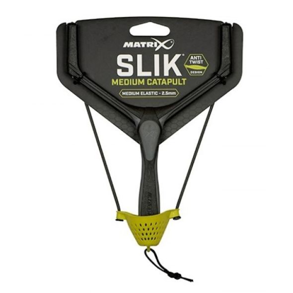 Slik Catapult este o prastie din gama producatorului Matrix recomandata pentru pescarii de stationar. Gama contine doua marimi, Medium si Large, echipate cu elastic in diferite diametre, pentru a putea nadi precis indiferent de situatie. Dupa cum sugereaza si numele, prastiile folosesc elasticul Matrix Slik, pentru durabilitate si performante deosebite. Slik ofera proprietati de intindere de neegalat (pana la 600% fata de elasticele clasice din latex) cu retragere ultra-rapida. Suprafata fina si neteda creeaza o frecare minima, ce garanteaza o performanta perfecta in orice conditii.