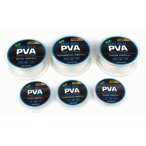 Plasa de rezerva PVA Fox este de cea mai inalta calitate si este furnizata in rola de 20m. Plasa este disponibila pe variante de tub larg (Wide - 35mm), ingust (Narrow - 25mm) sau super-ingust (Stix - 14mm). Plasa PVA Fast Melt se dizolva rapid, si este recomandata sa fie utilizata pe ape putin adanci, in special iarna cand temperaturile sunt scazute.