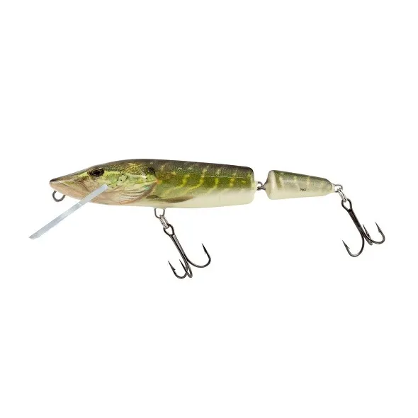 Salmo Pike Jointed este o naluca unica si greu de egalat, cu un design simplu, format din doua segmente, ce ii confera un balans perfect, cu un control optim asupra miscarilor in timpul recuperarii. Imita o stiuca de mici dimensiuni, astfel fiind exploatat la maxim comportamentul de canibal des intalnit la stiuci. De asemenea, este un vobler aerodinamic, usor de lansat la distante apreciabile.